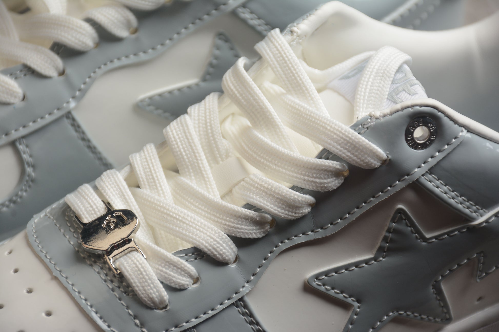Bape Sta Patent Leather Gray and White